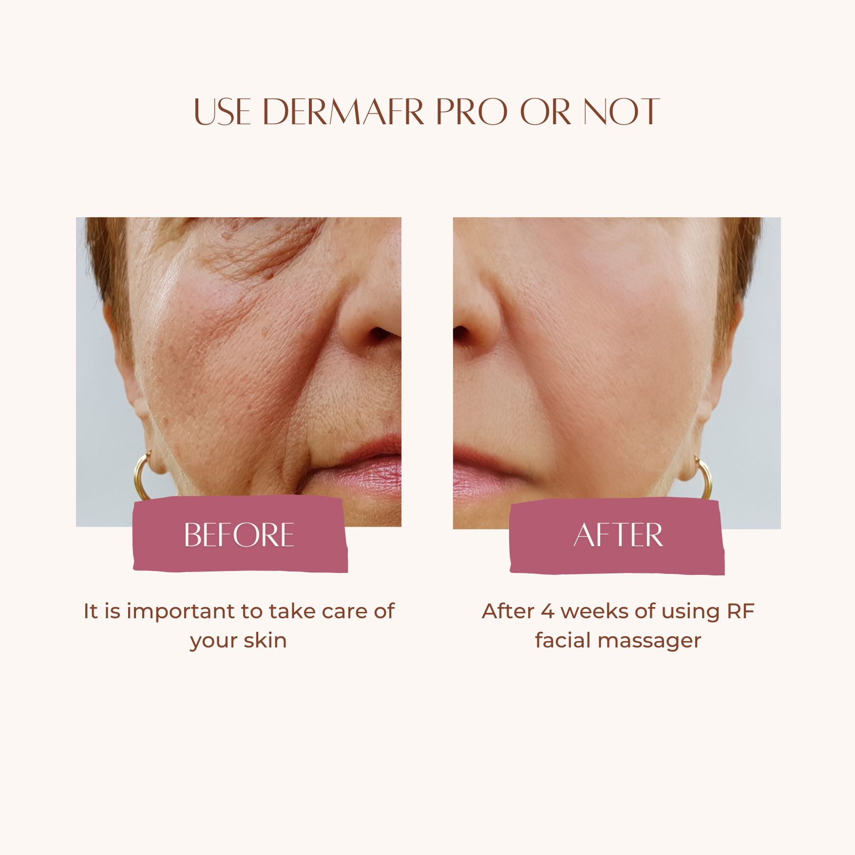 The DermaRF Pro™ is a next-generation radio frequency (RF) facial treatment device designed to support firmer-looking skin, smoother texture, and a refreshed complexion—right from home. By delivering controlled RF energy to the skin’s surface, DermaRF Pro helps warm the deeper layers of the skin to encourage a tighter, more refined appearance over time.